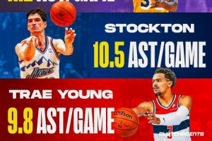 特雷·杨生涯场均助攻9.8次 排历史第3!前2为魔术师&斯托克顿!