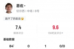 恩佐本场比赛数据如下: