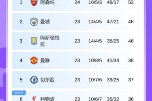 体育资讯2月1日讯 英超第24轮,阿森纳客场4-0大胜利兹联终结3轮不胜,先赛7分领跑,最新积分榜如下: