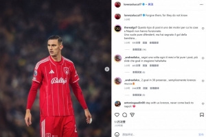 他也在赛后通过社媒晒出比赛照纪念,但他同时配文:“原谅他们吧,因为他们不懂。”这也被解读为卢卡在暗讽那不勒斯不重用自己,那不勒斯球迷群情激奋。